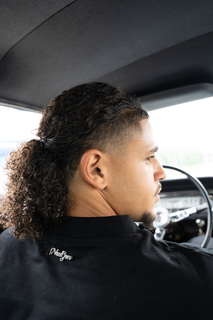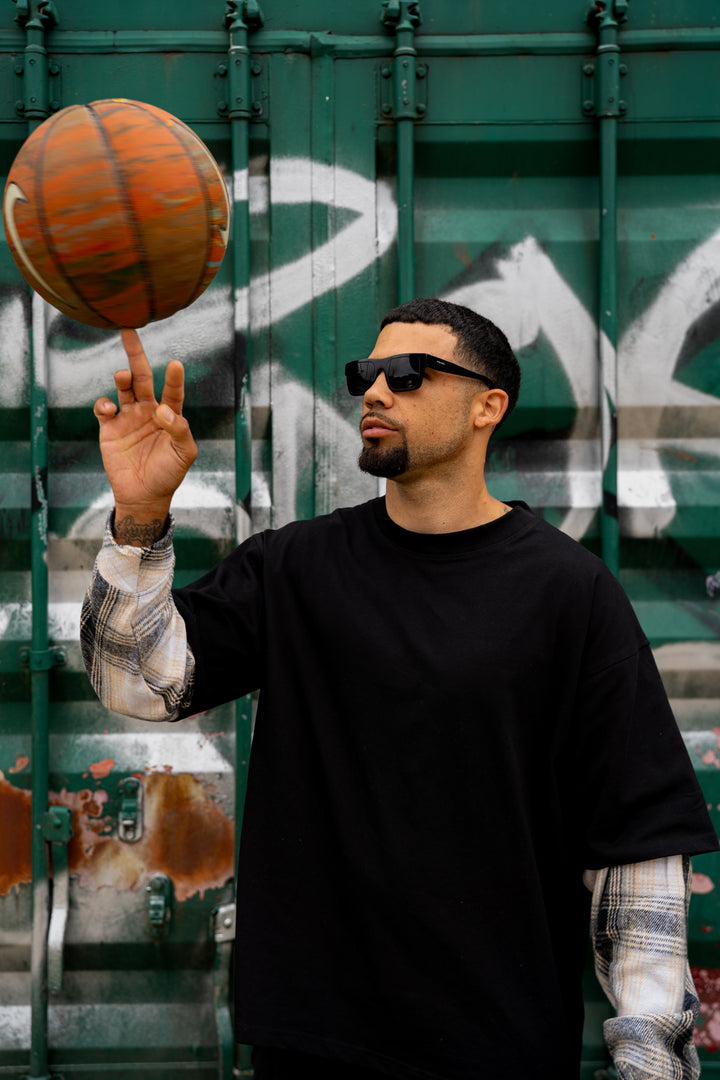 Our black layered sleeved T-shirt is made from 100% cotton, using high-quality fabric. Designed in an oversized fit with built-in beige flannel sleeves for a signature WSTF look.